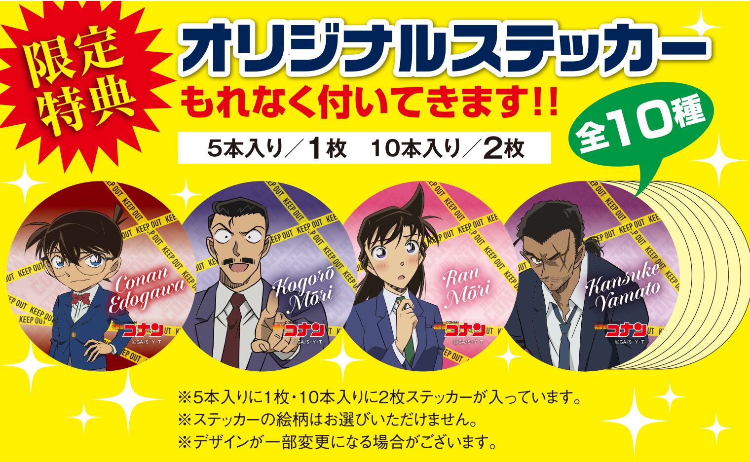 オリジナルステッカー10種のうち、2枚が封入されています。